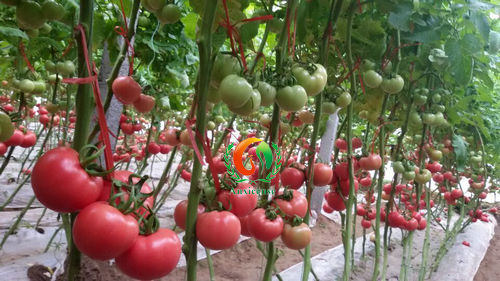 無限生長型粉果番茄,產(chǎn)量高植株生長旺盛,產(chǎn)量高,果實(shí)高圓形,硬度高,果個大且均勻,精品果重240一300克,熟性中等 抗:黃萎病、枯萎病生理小種0號、1號,番茄花葉病毒,(南方)根結(jié)線蟲,葉霉灰葉斑,鐮刀菌根腐病,番茄黃化卷葉、花葉病毒 推薦種植季節(jié):越冬一大茬