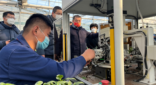 20221228日下午,農(nóng)業(yè)農(nóng)村部工程中心總工程師俞宏軍一行來到安信調(diào)研設(shè)施農(nóng)業(yè)情況。在區(qū)領(lǐng)導秦蕾、張鵬、李憲亮以及區(qū)農(nóng)業(yè)農(nóng)村局、區(qū)自然資源局、垛石街道黨工委等領(lǐng)導的陪同下,來到濟陽現(xiàn)代農(nóng)業(yè)科技示范園,調(diào)研山東安信種苗股份有限公司。